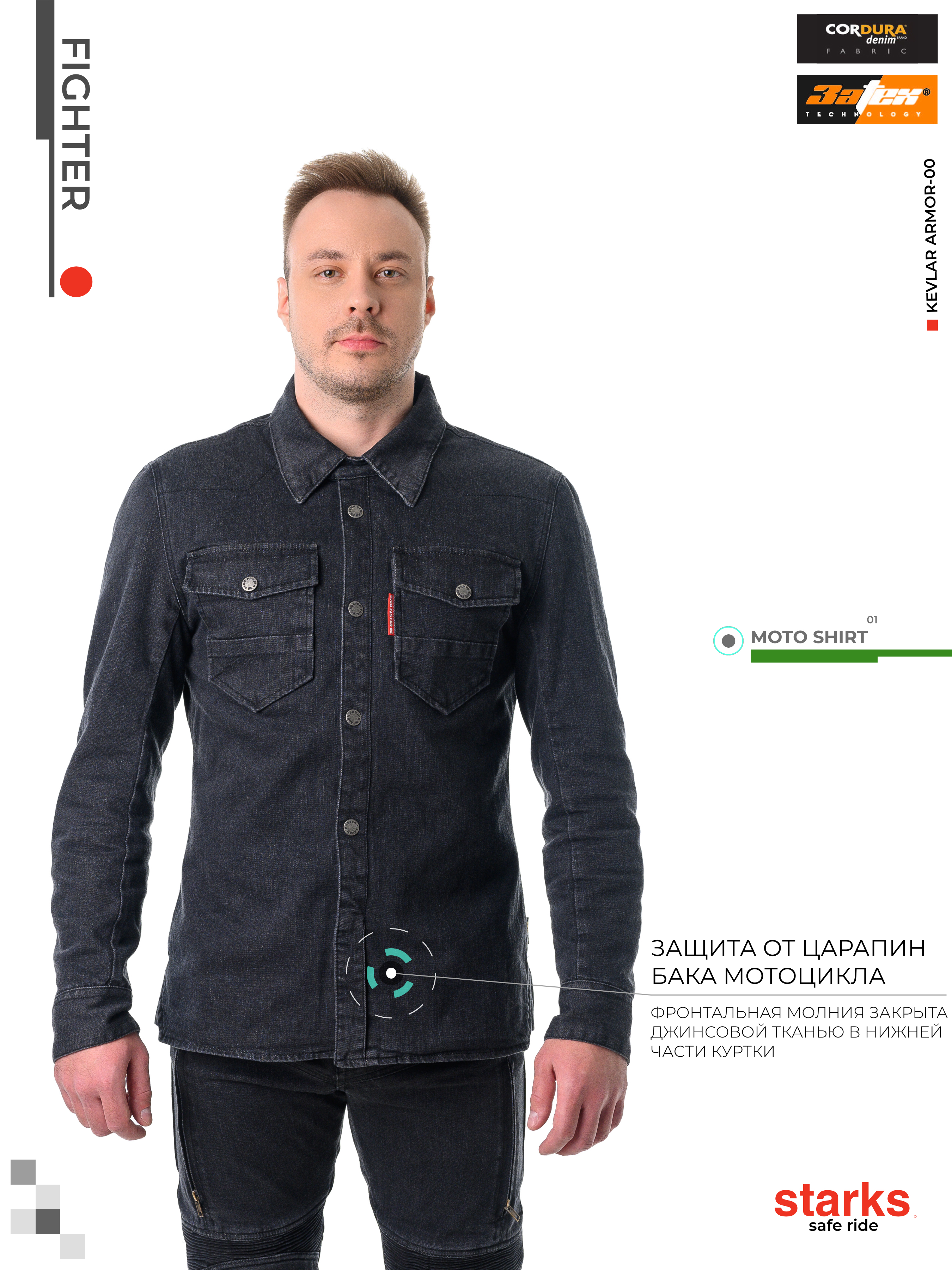 В плечах, локтях и спине куртка усилена 3ATEX®(Anti Abrasion Action Textile).